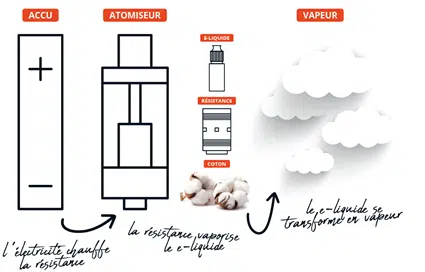 Contrairement aux premières impressions des clients, c’est un principe très simple qui permet à la cigarette électronique de fonctionner ! En fait, il y a tellement de matériel pour tant de profils différents que vous pourriez vous perdre, mais le système est presque toujours identique et seul le sentiment final varie !
